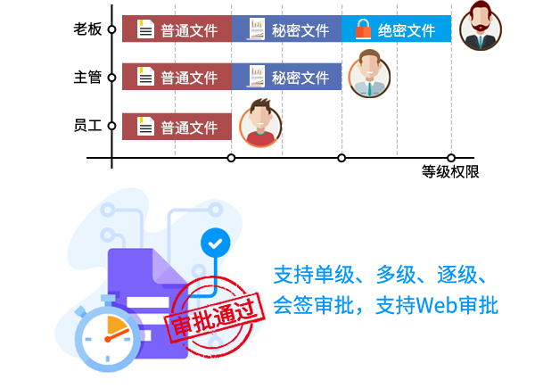 1.支持單級、多級、逐級、會簽審批,滿足多級別辦公審批流程需要,保證申請得到各級別管理者復(fù)核和審查。
