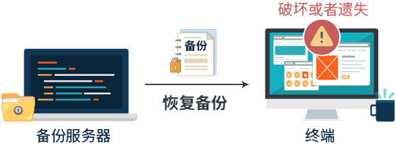 · 用戶誤刪除文件、或硬盤損壞,導致文件無法找回,可從文件備份服務(wù)器裝飾文件恢復到終端。 · 終端文件被病毒破壞或勒索病毒加密,導致文件無法再使用,可將正常的文件從文件備份服務(wù)器恢復到終端。