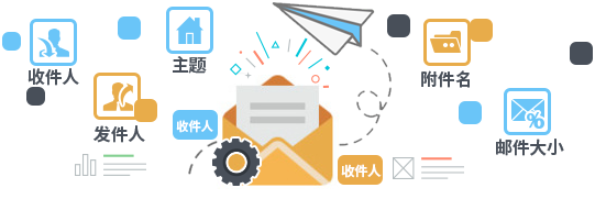 可通過(guò)收件人、發(fā)件人、主題、附件名、郵件大小等關(guān)鍵字設(shè)置策略來(lái)控制郵件收發(fā),防止企業(yè)的重要信息通過(guò)郵件方式泄露。